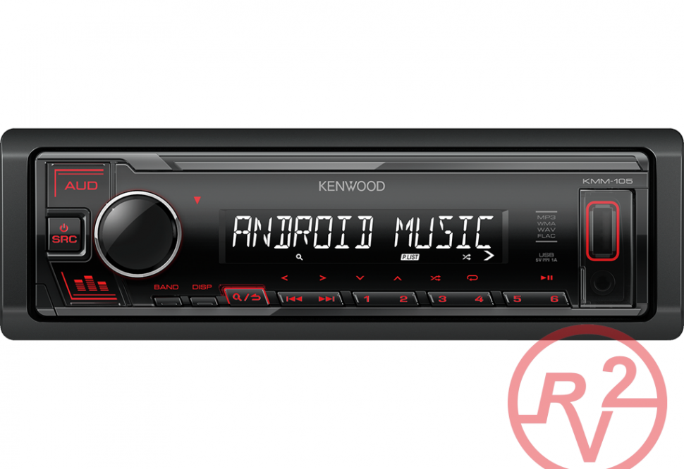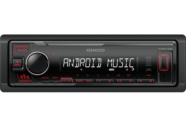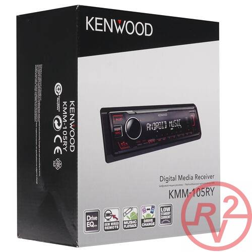 Автопроигрыватель KENWOOD KMM-105RY оснащен линейным аудиоразъемом для проводного подключения к портативным устройствам и USB-интерфейсом для подсоединения флешек. На тыльной стороне располагаются антенный вход и разъем подключения по ISO. Съемная лицевая панель выступает средством защиты от кражи, ведь без нее устройством невозможно управлять. Для настройки параметров работы автомагнитолы имеется кнопочная панель с красной подсветкой и сегментный дисплей, подсвечивающийся в сумерках белым цветом.